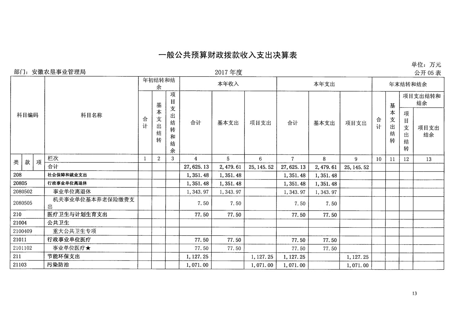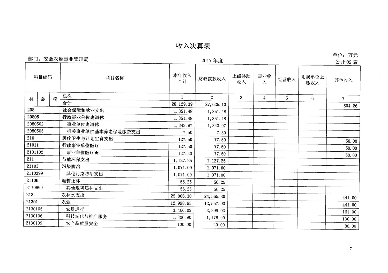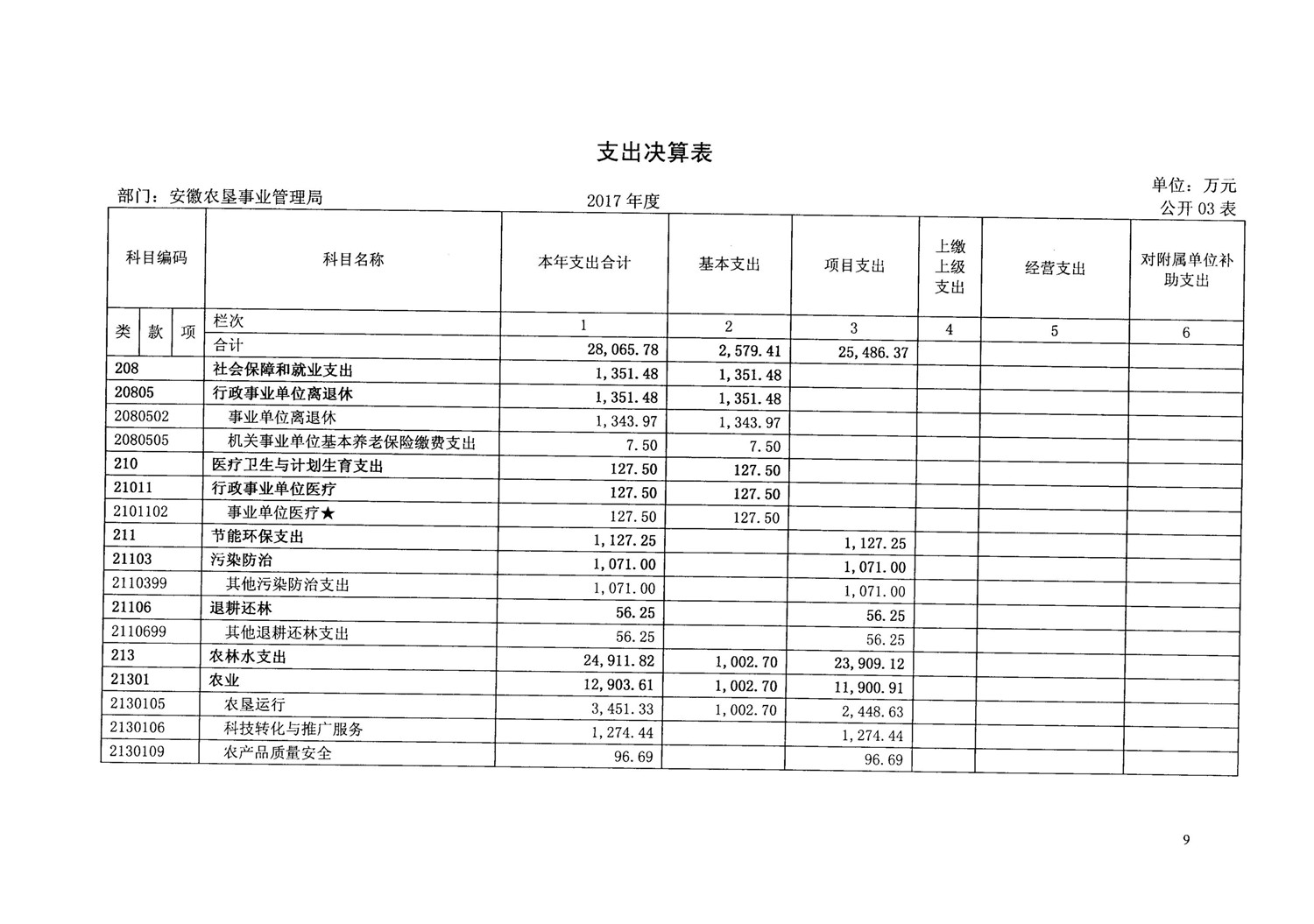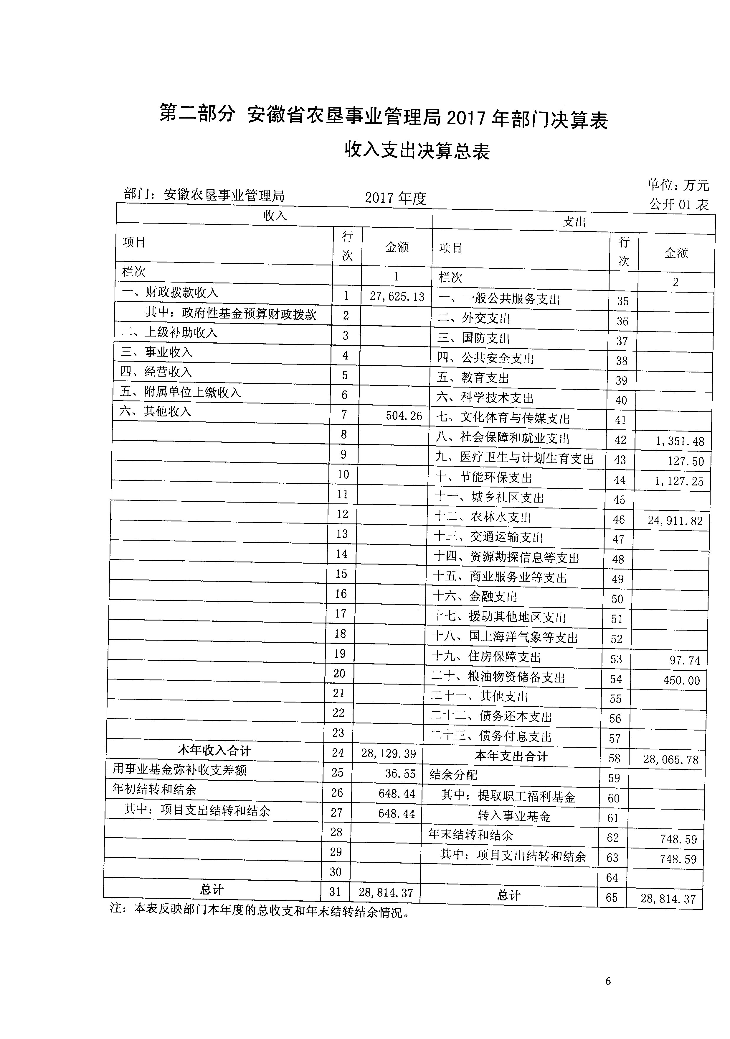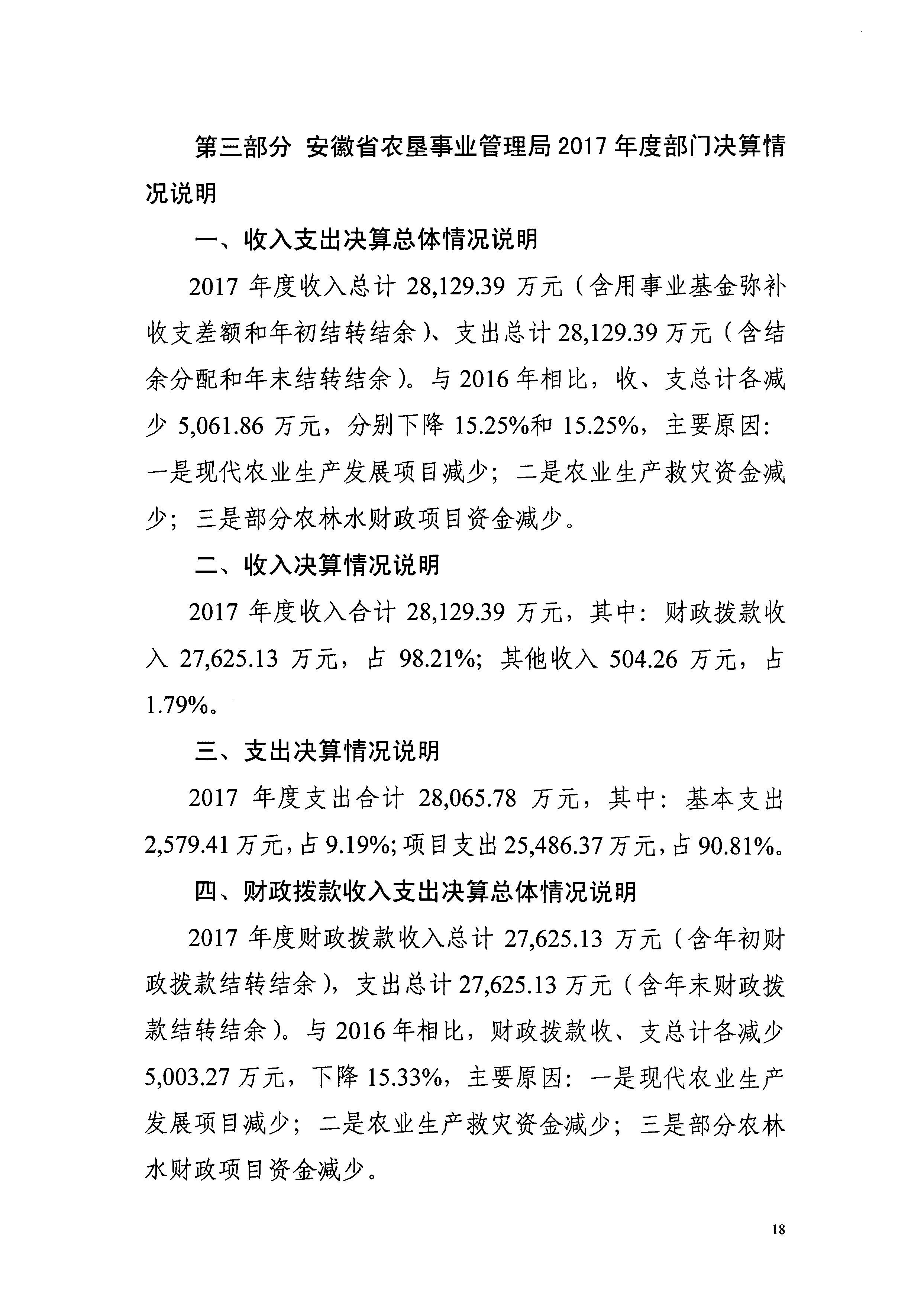 安徽省农垦事业管理局2017年部门决算情况