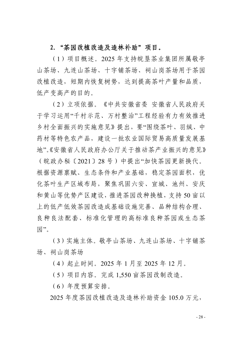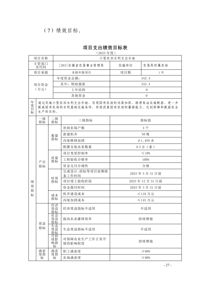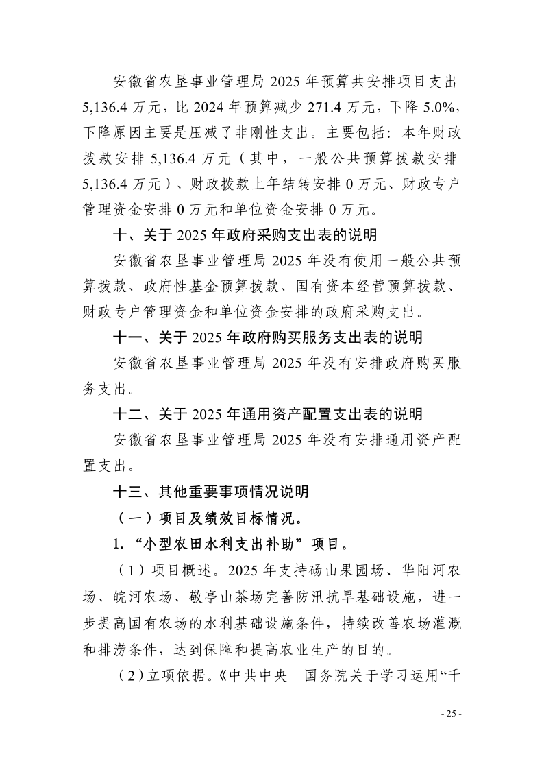 安徽农垦集团:安徽省农垦事业管理局2025年度项目支出绩效目标