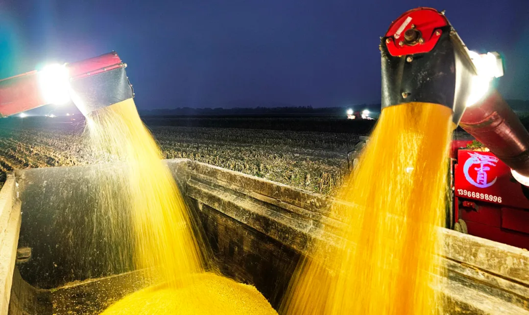 在安徽省宿州市埇桥区安徽农垦集团夹沟农场公司的玉米水肥一体化示范基地里,大型联合收割机正在收割玉米。基地负责人蔡中利捧着饱满的玉米穗,向记者算起增收账:“过去浇地靠漫灌、施肥凭经验,现在手机点一点,水肥直接送到玉米根上,一亩地还多收两麻袋!”