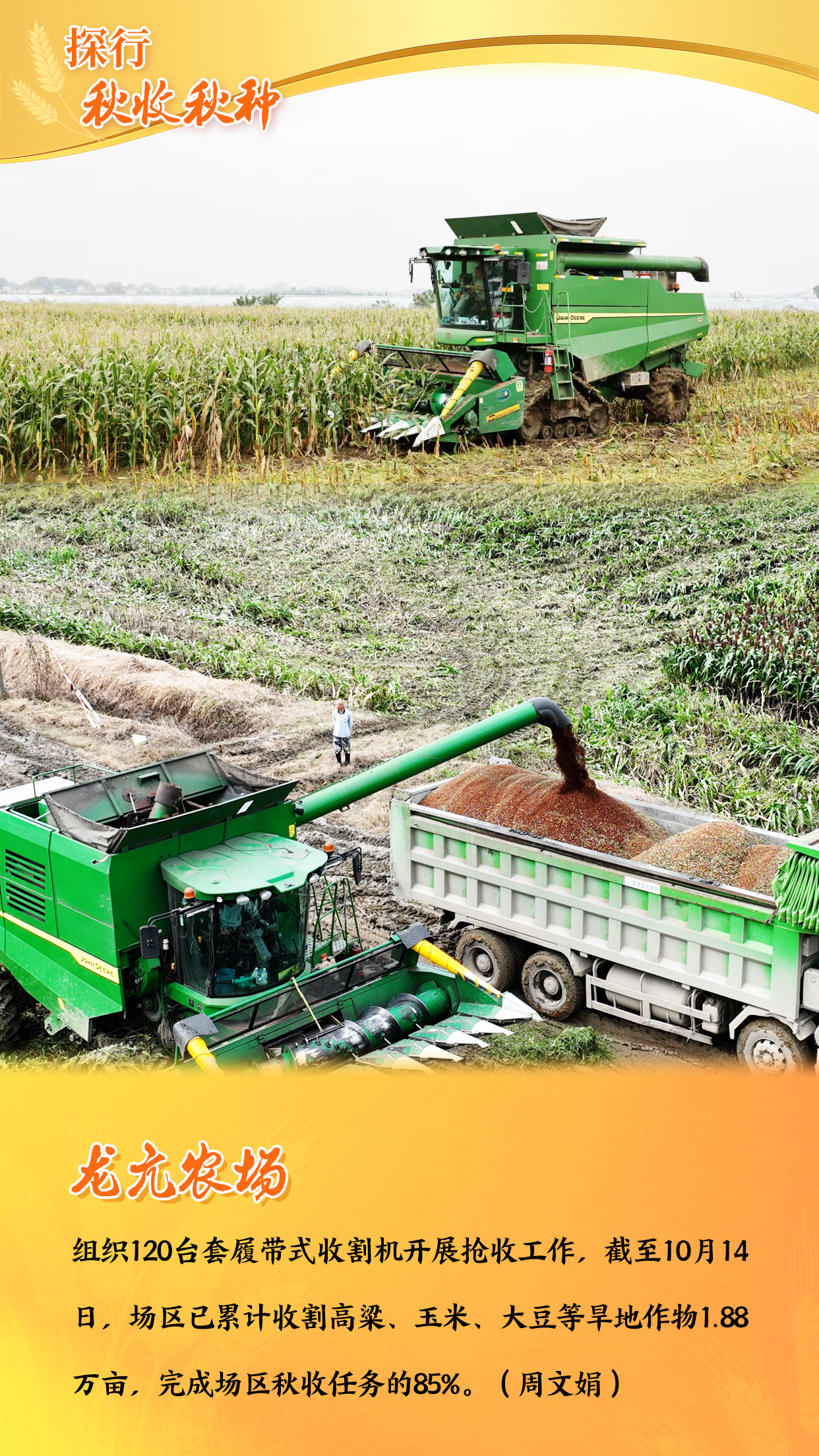 垦区上下争分夺秒开展秋收抢收。