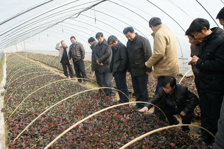 在淮安九洲园林公司参观红叶石楠大棚育苗情况
