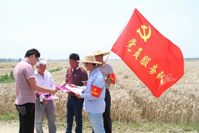 连日来,场机关党员干部纷纷胸戴党徽走向地头,向种植户宣传秸秆禁烧的要处、综合利用的益处,提醒最新天气情况,让广大职工群众自觉参与到禁烧行动中来,并合理安排好午季收种时间。为保证全场“零火点”,以支部为单位组成的党员服务队驻扎在场属10个农业分场和龙亢试验区潘褚两村,佩戴着“党员志愿者”袖章,行走在已收完的麦地里,督导大家第一时间粉碎秸秆,时刻防范出现火点;“抢粮保种”队伍中,各经营性党员服务队活跃在收粮现场,忙着检测水分、填登记卡,缩短了职工售粮等待时间,保障了种粮及时入库;医院党员服务队奔走到每一块麦地,送去防暑药品及小贴士,让种植户们以最佳身体状态投入午收夏种中。党员农机手们亮身份,当志愿者,卯足劲争当“党员示范岗标兵”。