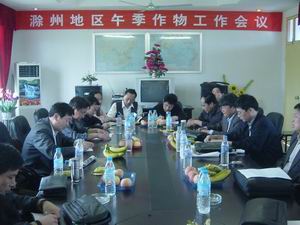在午季作物工作会议上,徐成银场长详细介绍农场农业 生产和种子生产情况。滁州农委负责人结合观摩活动强 调,滁州地区下年午季作物主推品种要通过这次会议安 排落实好,加强品种信息交流,以正确引导农民用种, 促进地区经济稳定健康发展。(王国朝)