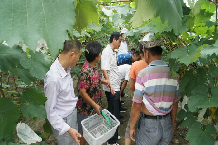8月2日,水家湖农场领导邵乃昌、汪升洪、唐松旺带领党代会、职代会“两会”代表100余人,分两组前往合肥大圩镇参观学习“开心农场”。据介绍,以前这里是交通不便、信息闭塞、缺乏活力的贫穷乡村,3万亩农田以水稻种植为主,农民忙时种地、闲时打工。在种植葡萄的26个年头里,他们经历了“三部曲”,1985年至1991年,11户农民自发试种了约30亩葡萄且尝到了甜头,但91年洪水使之毁于一旦,随之进入了低谷期。2001年以来,大圩镇以发展城郊型农业和都市农业为契机,进入了高效农业的快速发展期,成为了合肥市名副其实的“大菜篮子”。农场代表一到园区,满眼皆是葡萄园,一大串一大串,晶莹剔透、美景诱人,场领导请来镇里的农技人员,为代表们讲授了葡萄前期投资、种植技术和销售方法,他们介绍说,这里每亩葡萄园前期投资在4000元左右,年收益达1.2至1.5万元,由经纪人实行网络销售,或城里游客前来观光采摘。返程途中,代表们仍然议论着大圩、讨论着葡萄,纷纷表示,自家也要加快结构调整步伐,做农场发展高效农业的带头人。