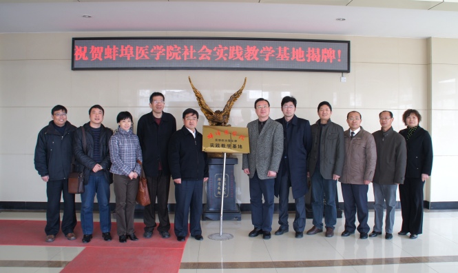 “蚌埠医学院思想政治理论课实践教学基地在喜庆的气氛中揭牌。(李峰)