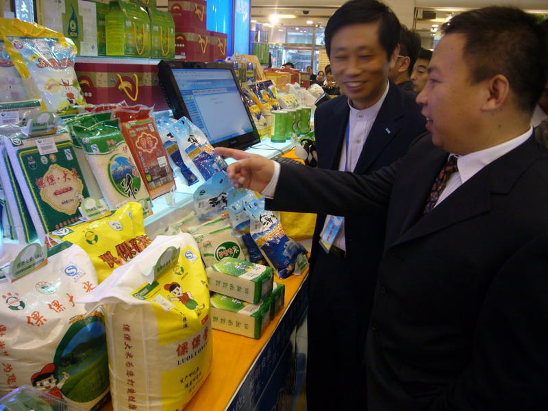 由农业部农垦局、农业部农产品质量安全监管局主办、上海光明食品(集团)公司承办的“农垦农产品质量追溯上海展示周”活动,11月7日上午在上海第一食品有限公司五角商城隆重开幕。全国农垦14个垦区28家企业的80余种“追溯农产品”参加了这次展示周宣传活动。本次活动集中宣传和展示了农垦农产品质量追溯项目实施以来,全国各垦区农产品质量安全的建设成果,并通过现场演示,使消费者了解和掌握农产品质量追溯系统查询和操作方法。