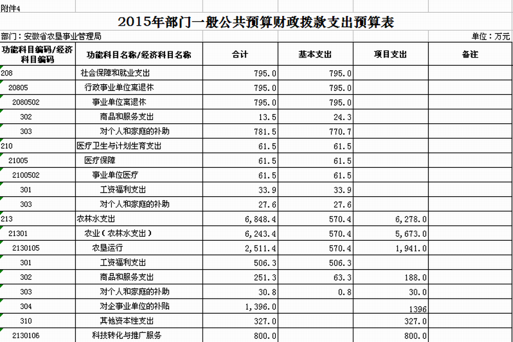 4. 安徽省农垦事业管理局2015年一般公共预算财政拨款支出预算表